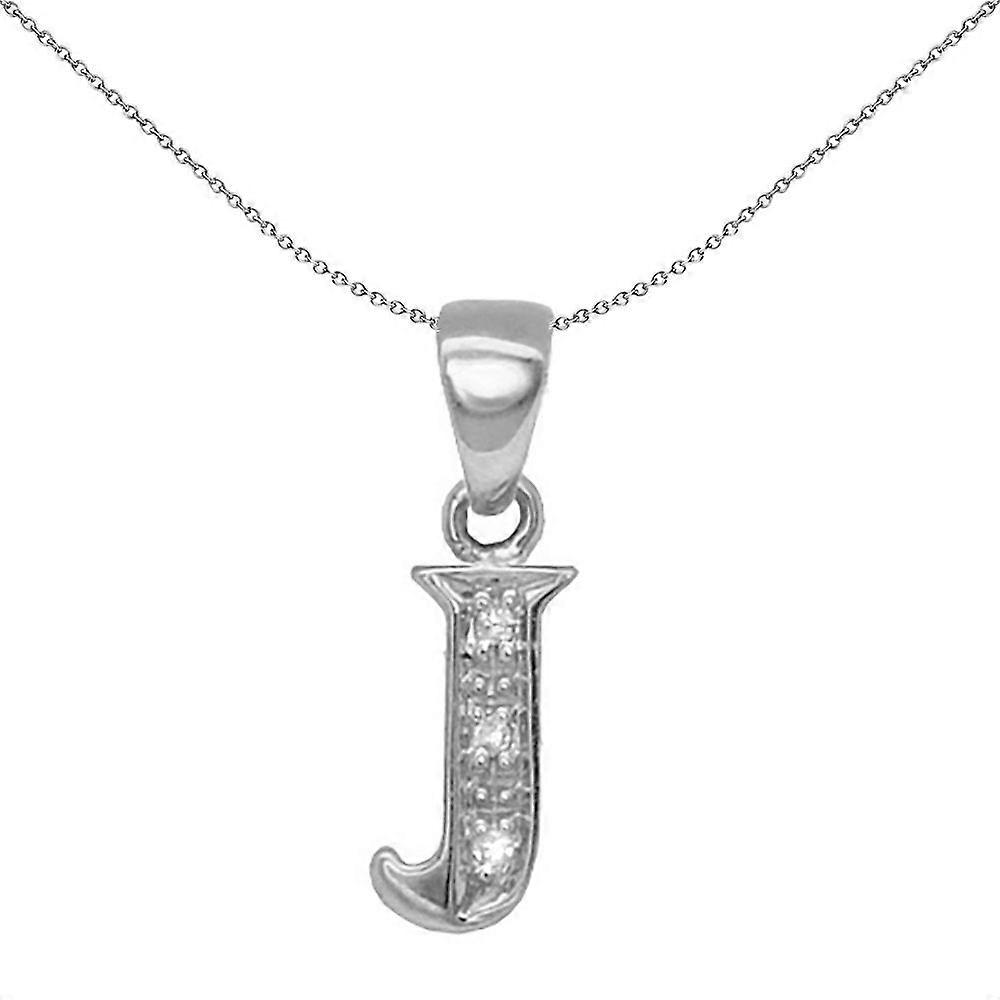 Jewelco London 9ct White Gold Pave Set Round H I2 0.02ct Diamond Identity Dainty Initial ID Charm Pendant Letter J