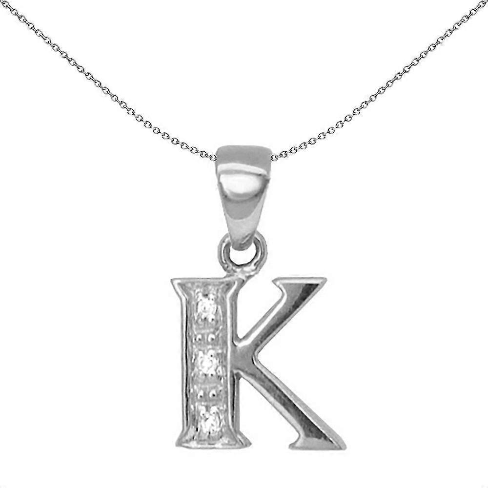 Jewelco London 9ct White Gold Pave Set Round H I2 0.02ct Diamond Identity Dainty Initial ID Charm Pendant Letter K