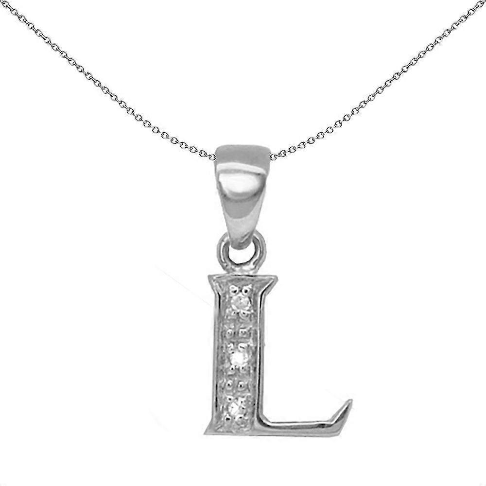 Jewelco London 9ct White Gold Pave Set Round H I2 0.02ct Diamond Identity Dainty Initial ID Charm Pendant Letter L