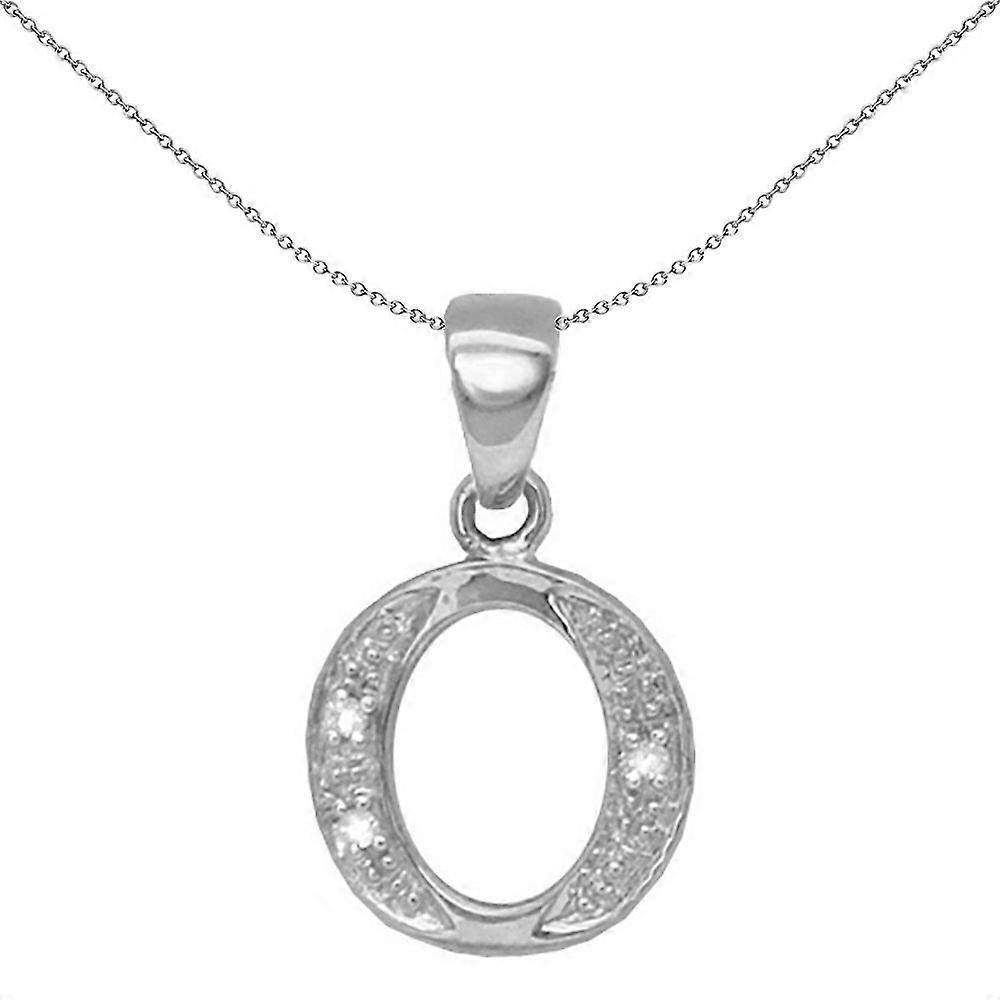 Jewelco London 9ct White Gold Pave Set Round H I2 0.02ct Diamond Identity Dainty Initial ID Charm Pendant Letter O