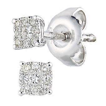Jewelco London 9ct White Gold Princess 10pts Diamond Round Diamond Solitaire Stud Earrings