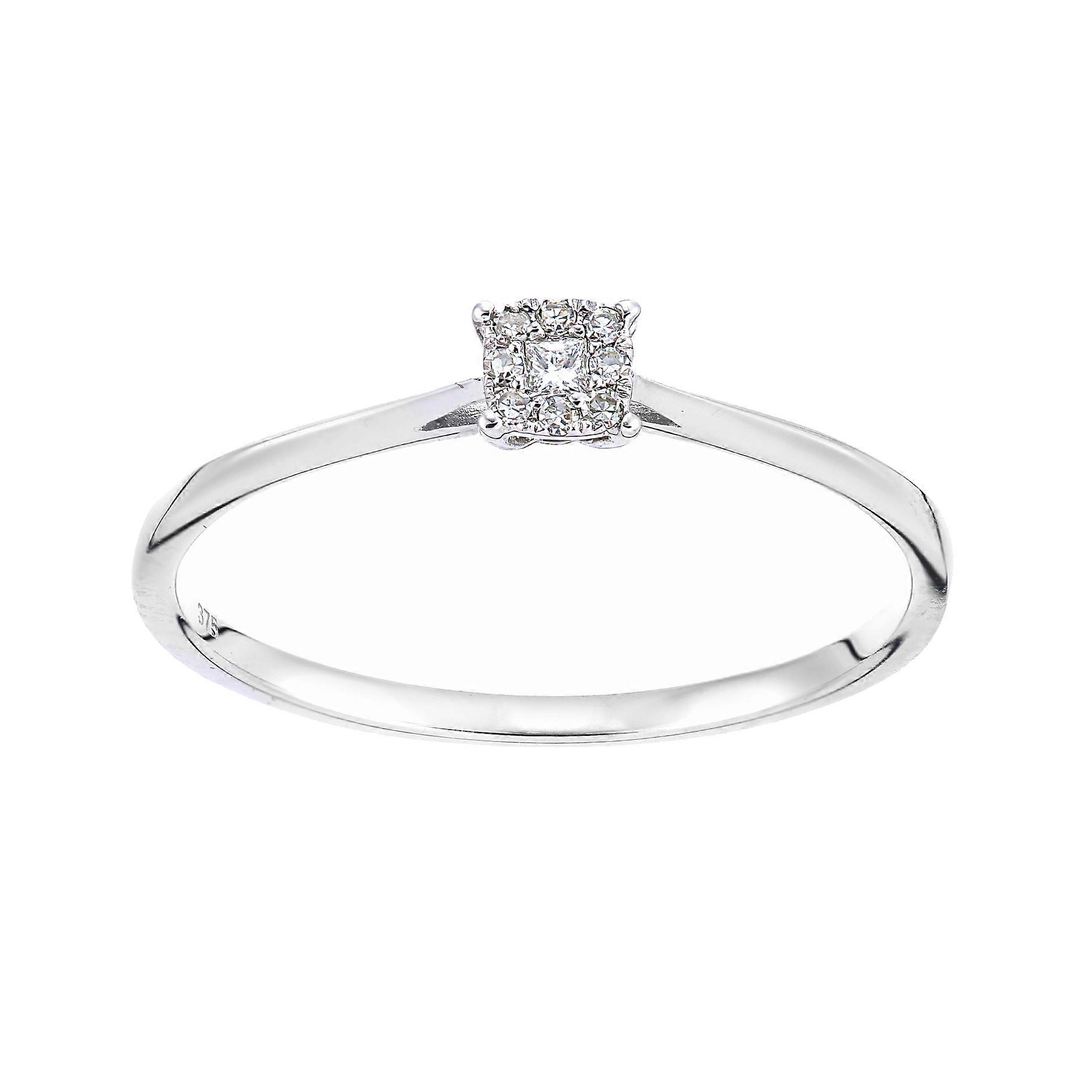 Jewelco London 9ct White Gold Princess 7pts Diamond Round Diamond Faux Solitaire Cluster Engagement Ring