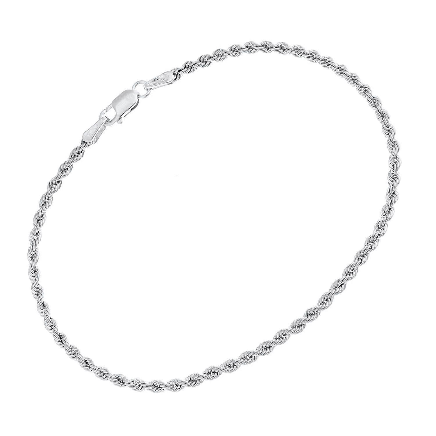 Jewelco London 9ct White Gold Rope Chain Bracelet 2mm 7.25 inch 18cm