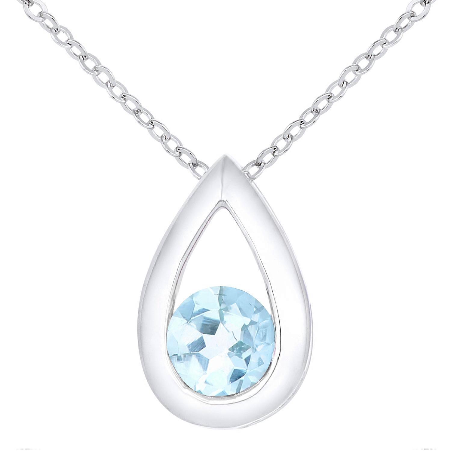 Jewelco London 9ct White Gold Round 0.31ct Blue Topaz Teardrop Pendant Necklace 18 inch 46cm
