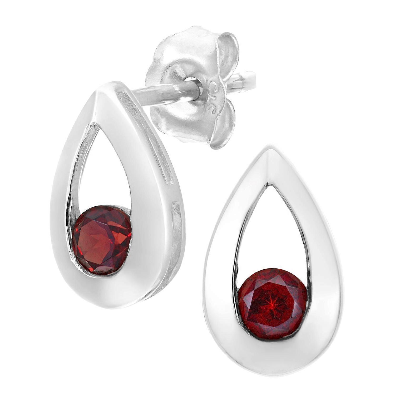 Jewelco London 9ct White Gold Round 0.35ct Garnet Teardrop Drop Earrings