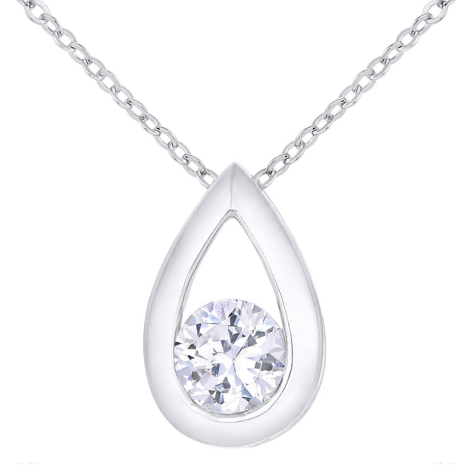 Jewelco London 9ct White Gold Round 0.45ct Cubic Zirconia Teardrop Pendant Necklace 18 inch 46cm