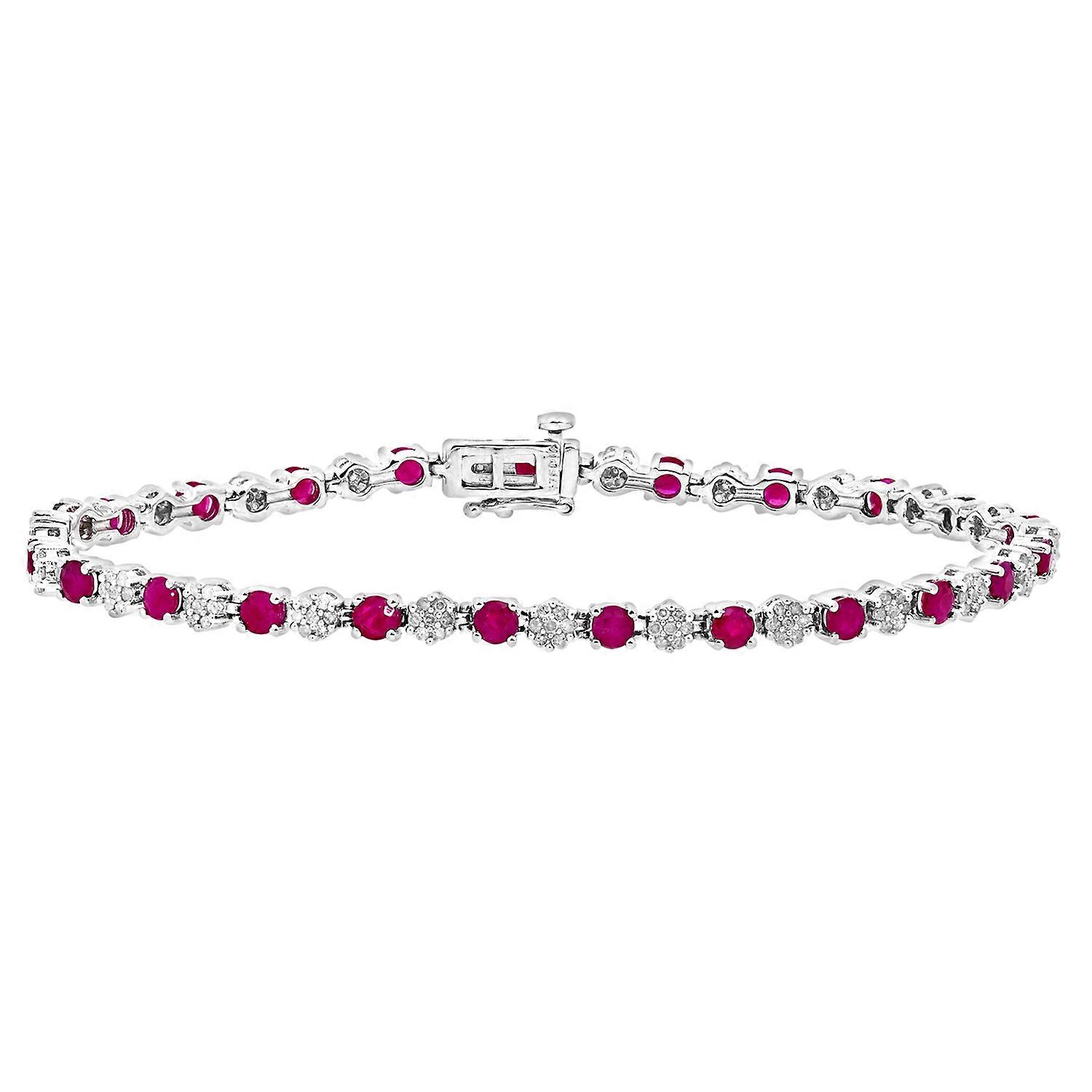 Jewelco London 9ct White Gold Round 0.63ct Diamond Round 3.52ct Ruby Alternating Cluster Tennis Bracelet