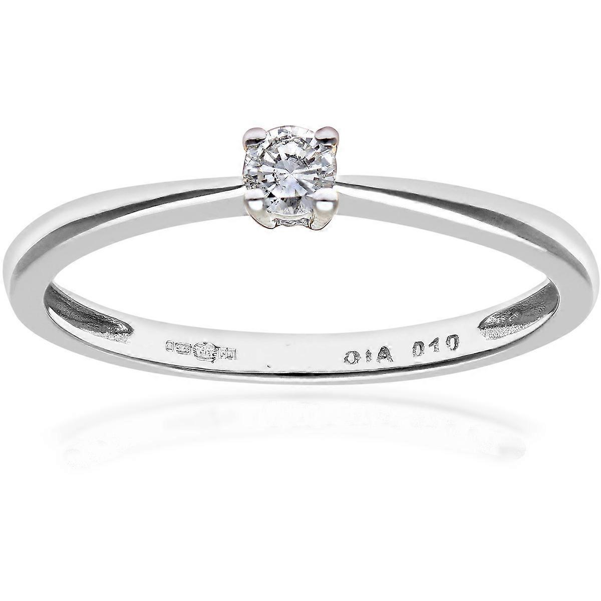 Jewelco London 9ct White Gold Round 10pts Diamond 4 Claw Solitaire Engagement Ring