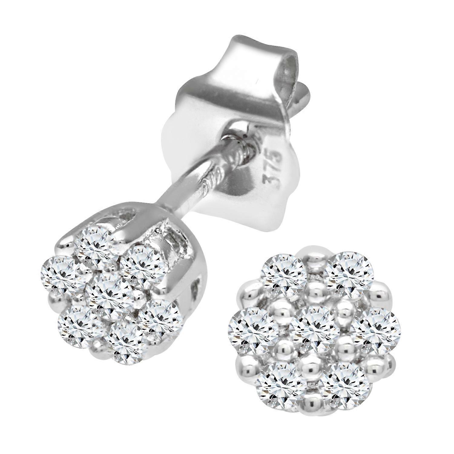 Jewelco London 9ct White Gold Round 10pts Diamond Cluster Stud Earrings