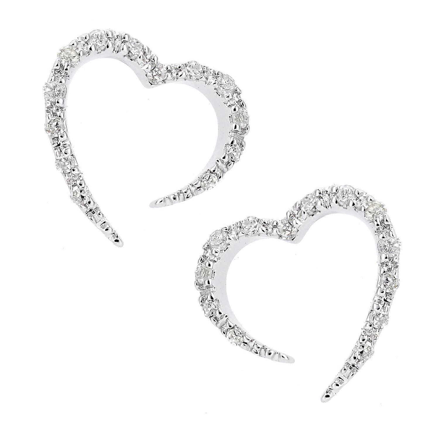 Jewelco London 9ct White Gold Round 10pts Diamond Heart Drop Earrings