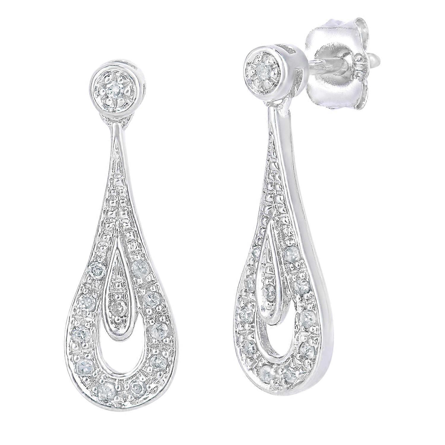 Jewelco London 9ct White Gold Round 10pts Diamond Teardrop Drop Earrings