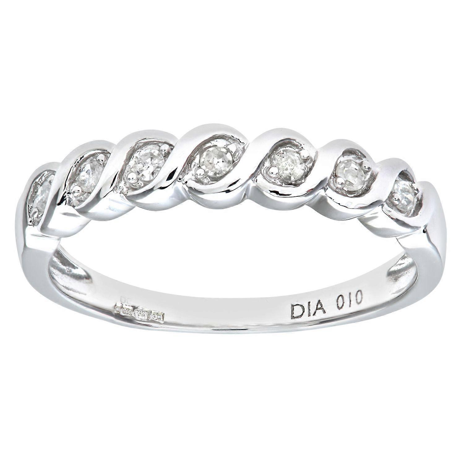 Jewelco London 9ct White Gold Round 10pts Diamond Wavy Ribbon Twist 7 Stone Eternity Ring 4mm