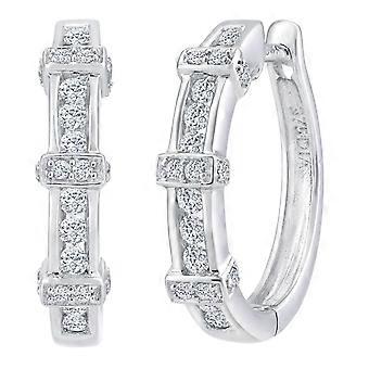 Jewelco London 9ct White Gold Round 1/2ct Diamond Channel Hoop Earrings 3mm