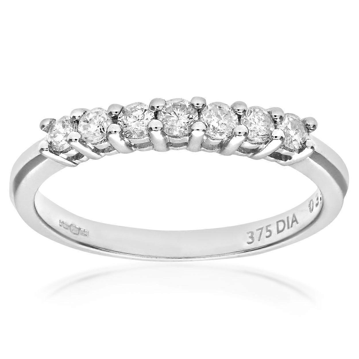 Jewelco London 9ct White Gold Round 1/3ct Diamond 7 Stone Claw Set Half Eternity Ring 2mm