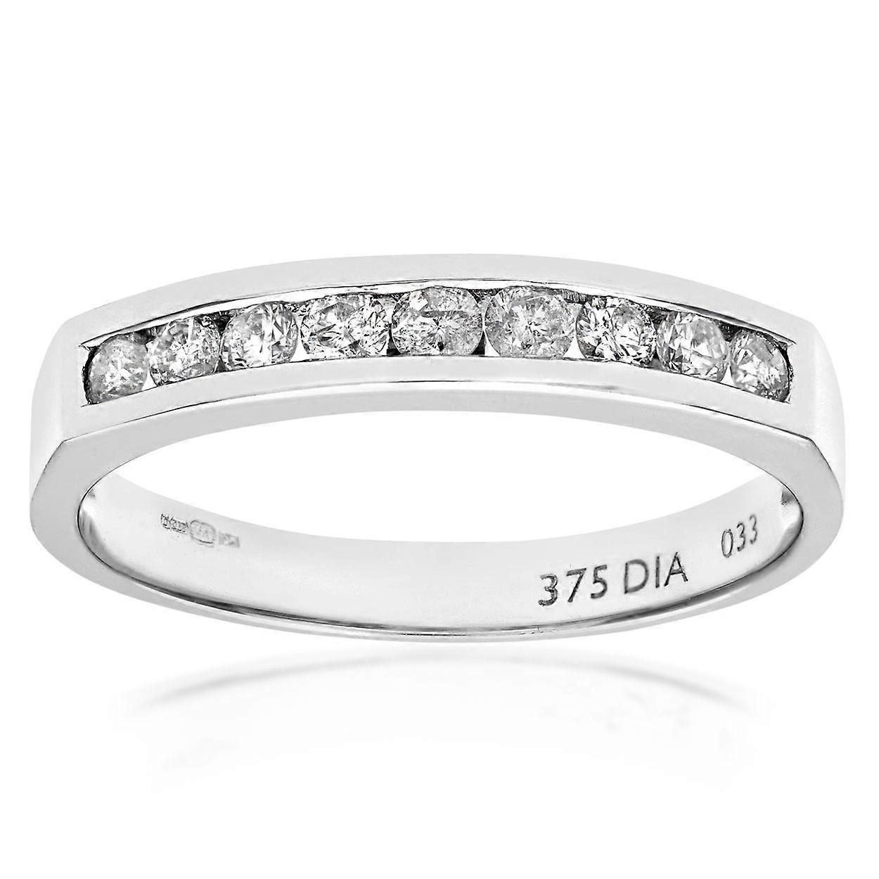 Jewelco London 9ct White Gold Round 1/3ct Diamond 9 Stone Channel Set Half Eternity Ring 2.5mm