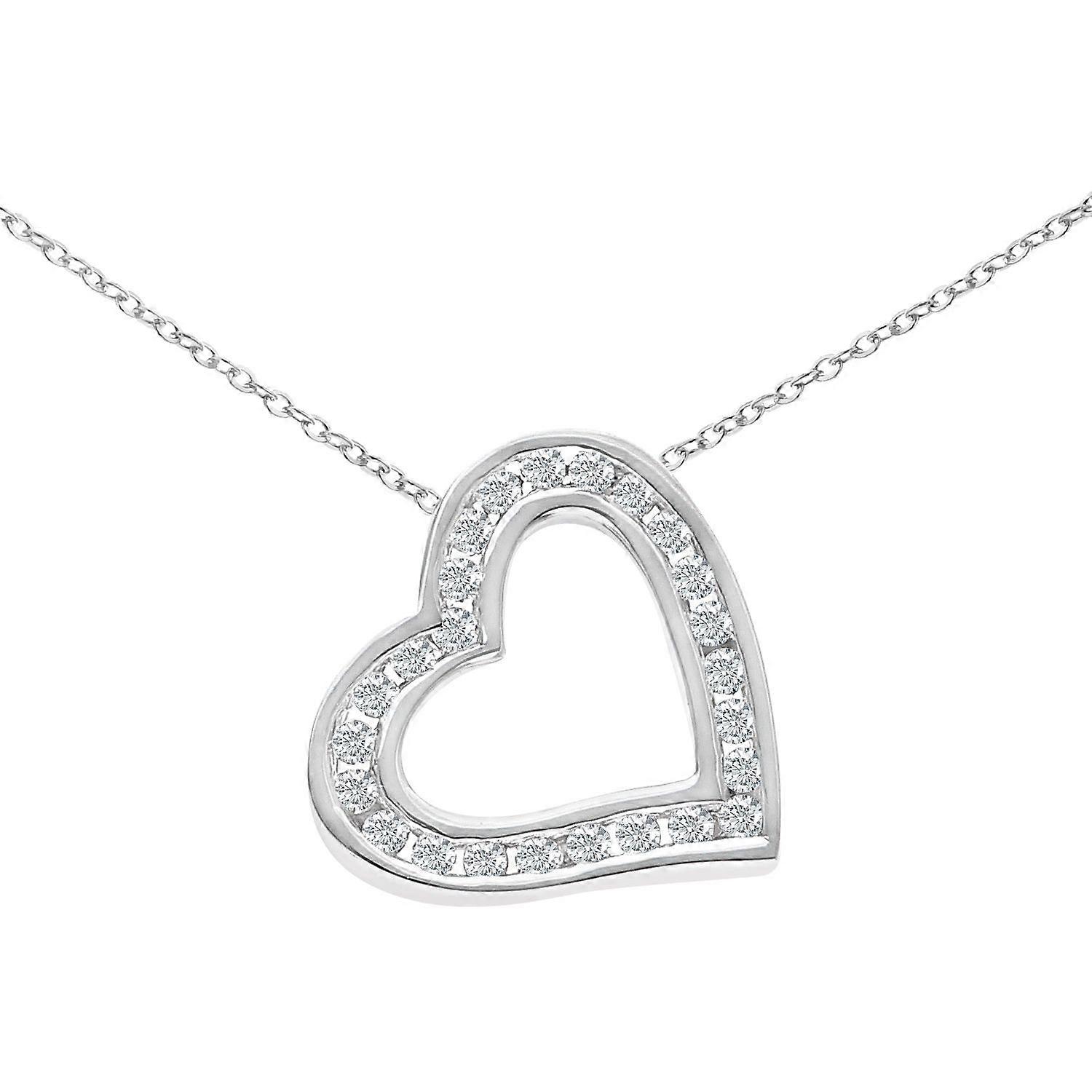 Jewelco London 9ct White Gold Round 1/4ct Diamond Heart Pendant Necklace 18 inch 46cm