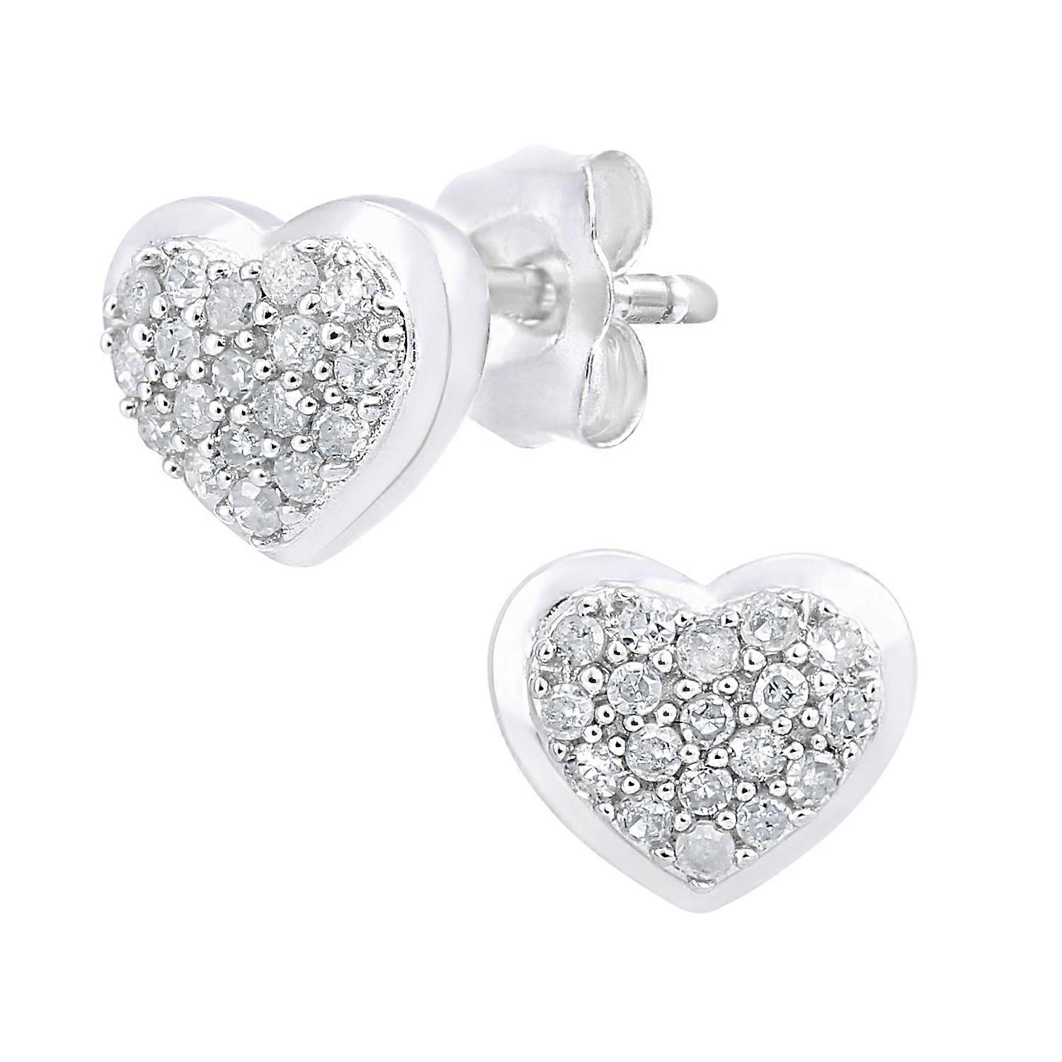 Jewelco London 9ct White Gold Round 14pts Diamond Heart Stud Earrings
