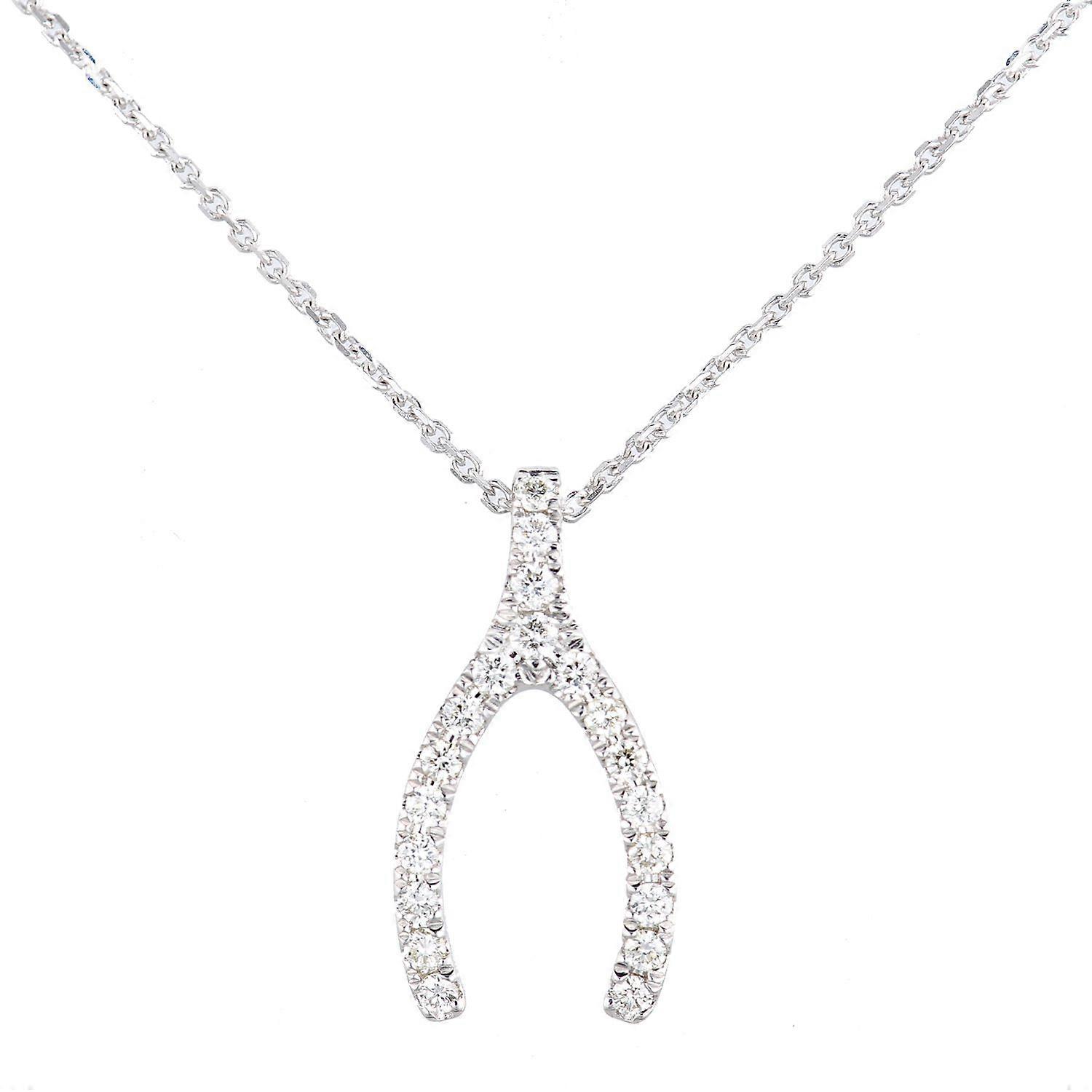 Jewelco London 9ct White Gold Round 15pts Diamond Horseshoe Wishbone Charm Necklace 18 inch 46cm