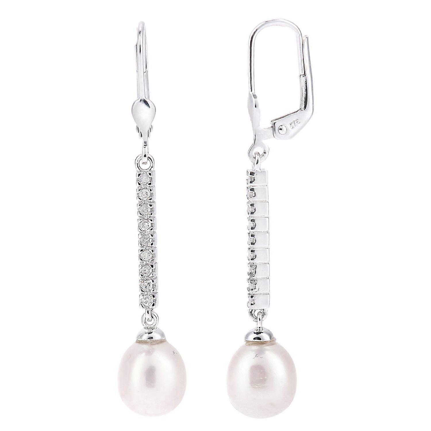 Jewelco London 9ct White Gold Round 16pts Diamond Oval Pearl 8x10mm Trickling Ice Moon Drop Earrings