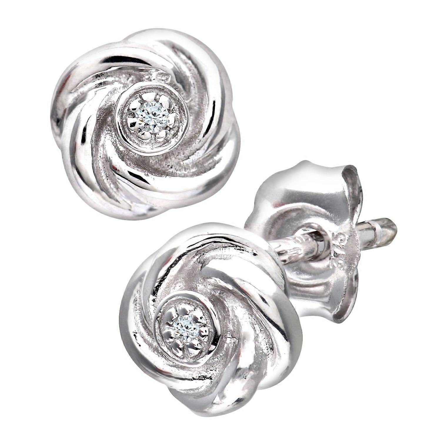 Jewelco London 9ct White Gold Round 1pts Diamond Flower Stud Earrings