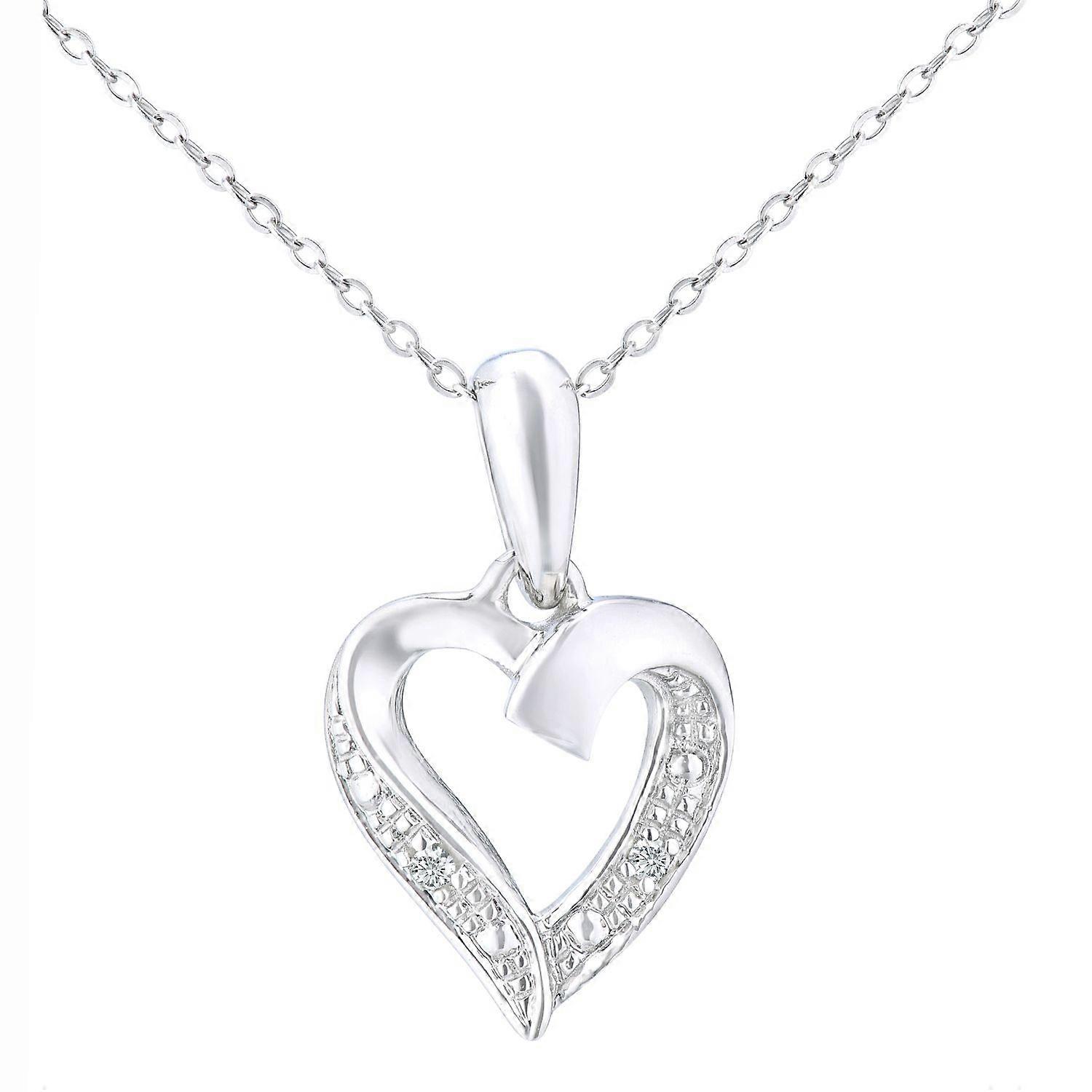 Jewelco London 9ct White Gold Round 1pts Diamond Heart Pendant Necklace 18 inch 46cm
