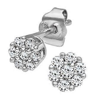 Jewelco London 9ct White Gold Round 20pts Diamond Cluster Stud Earrings
