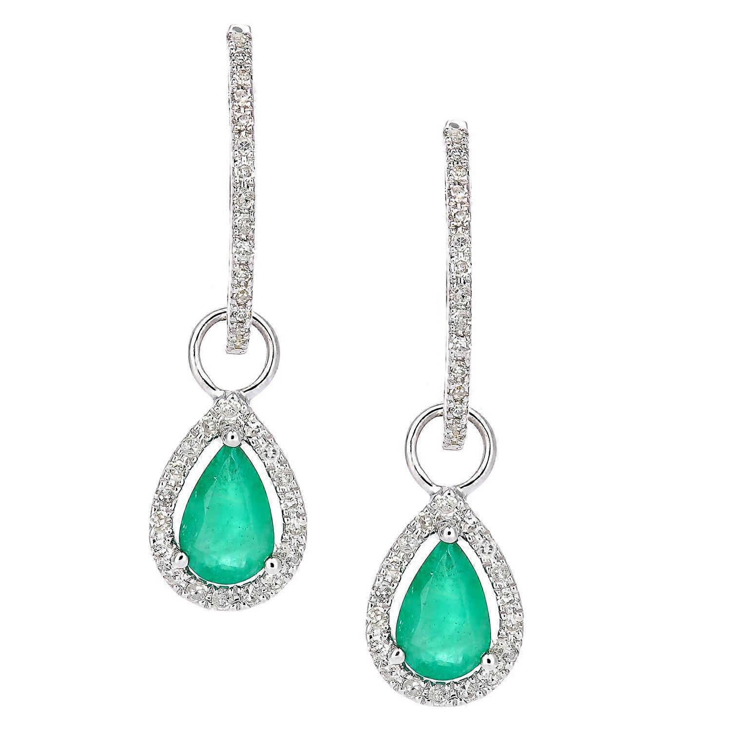 Jewelco London 9ct White Gold Round 20pts Diamond Pear 0.7ct Emerald Teardrop Drop Earrings