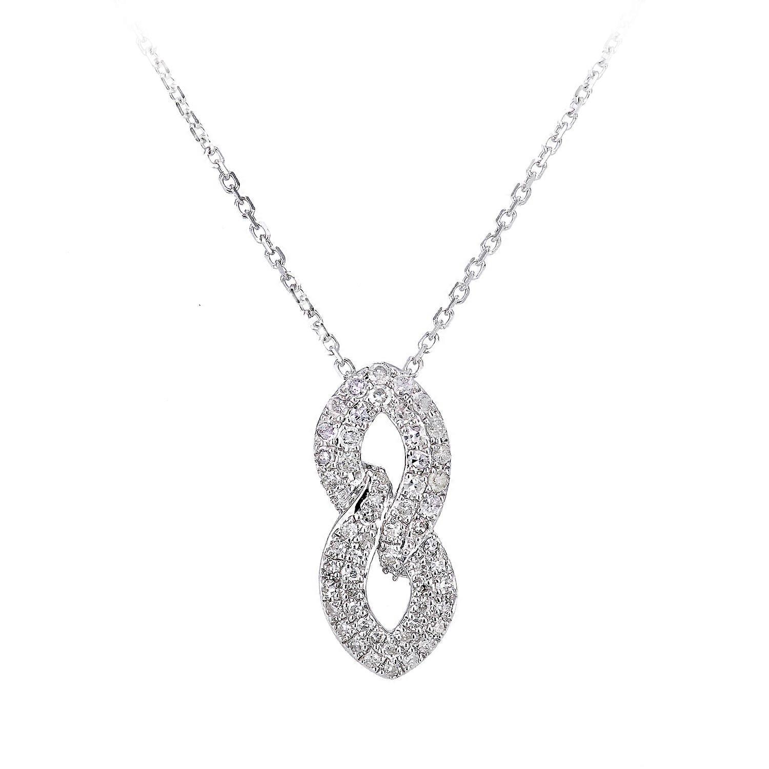 Jewelco London 9ct White Gold Round 22pts Diamond Infinity Pendant Necklace 16 inch 42cm