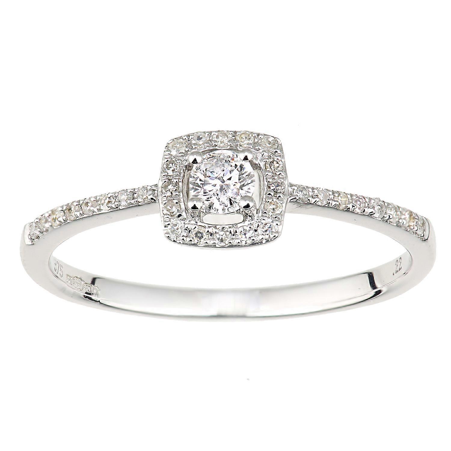 Jewelco London 9ct White Gold Round 22pts Diamond Square Cushion Halo Solitaire Cluster Ring