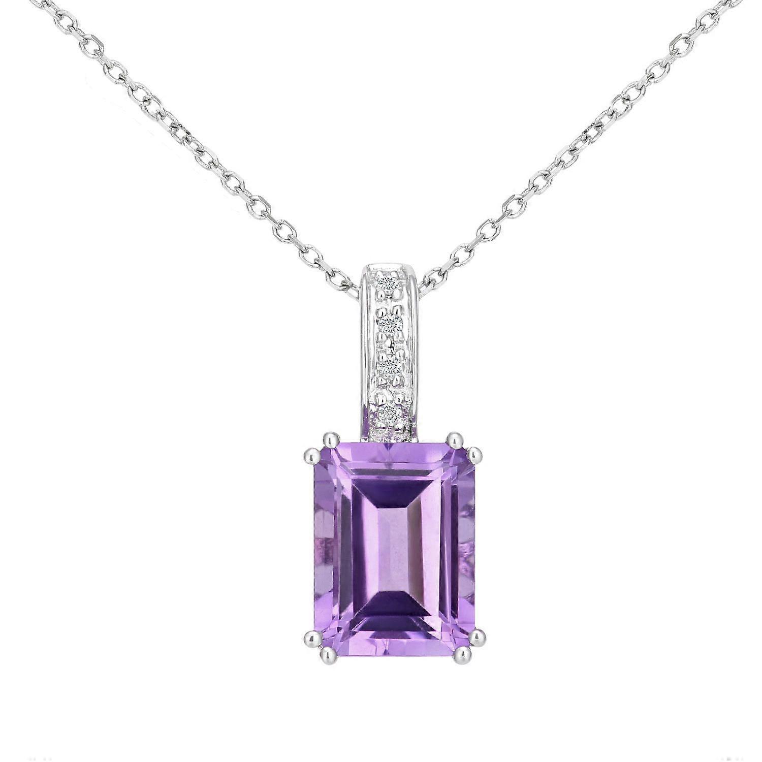 Jewelco London 9ct White Gold Round 2pts Diamond Octagon 1.5ct Amethyst Inverted Popsicle Pendant Necklace 16 inch 42cm