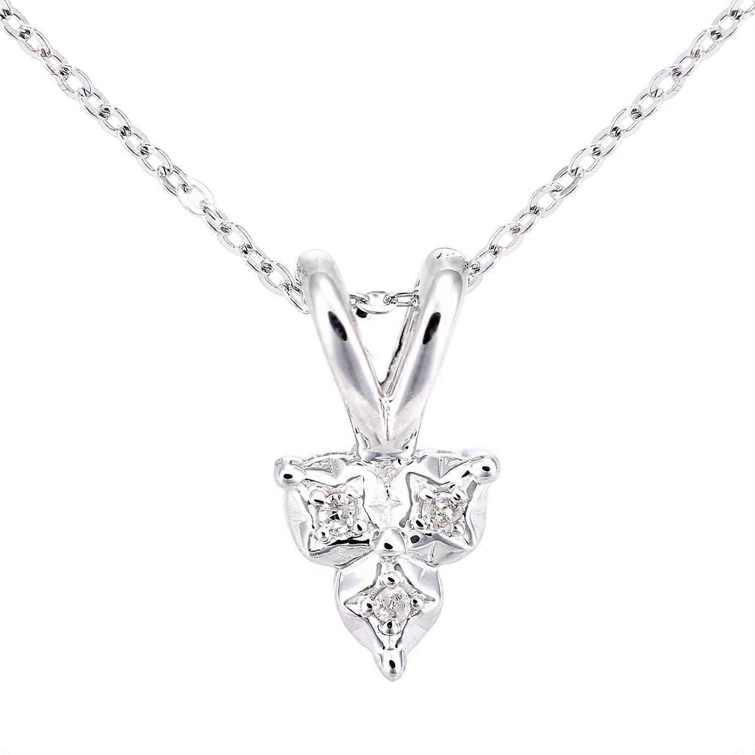 Jewelco London 9ct White Gold Round 2pts Diamond Trilogy Pendant Necklace 18 inch 46cm