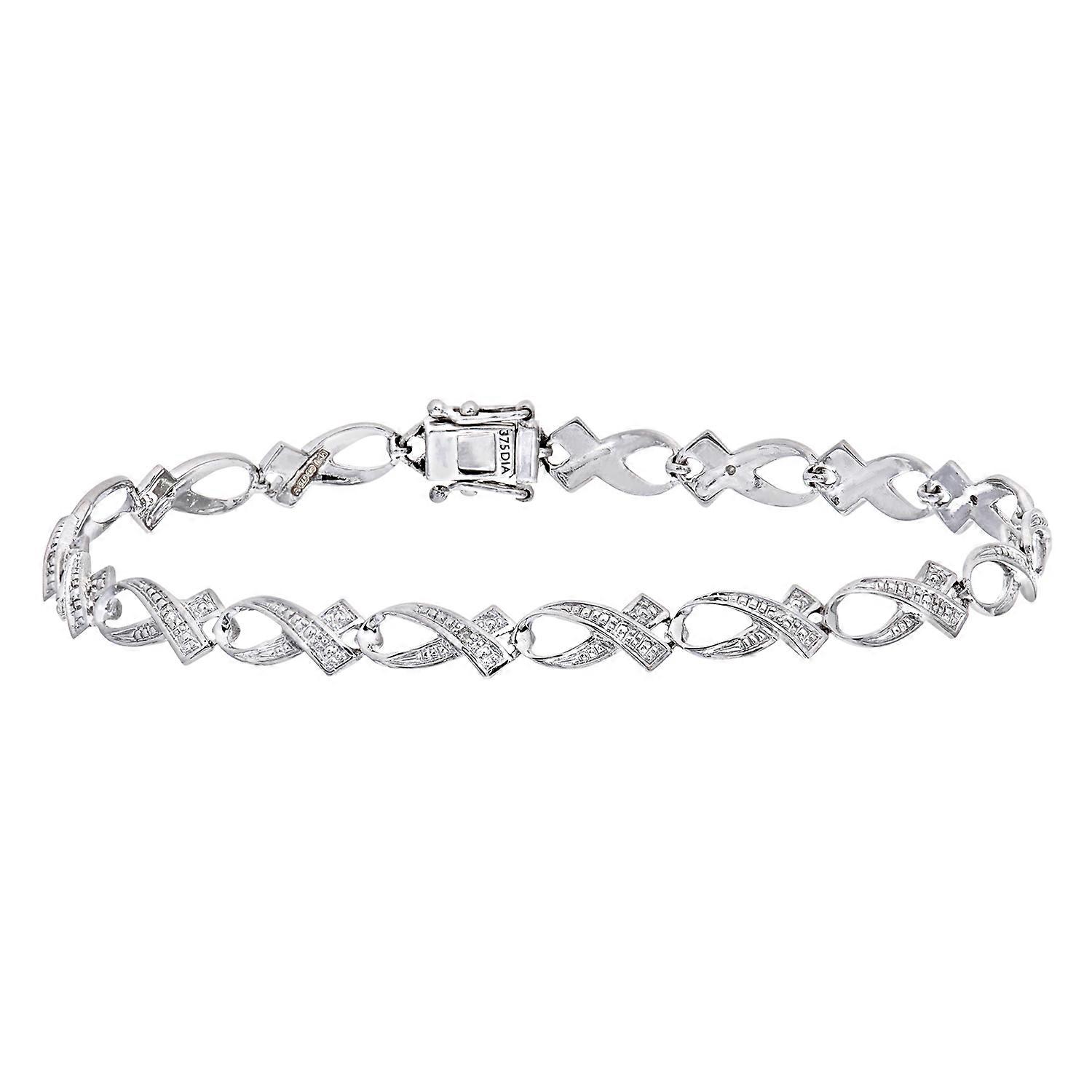 Jewelco London 9ct White Gold Round 3pts Diamond Crossover Ribbon Kiss Link Bracelet