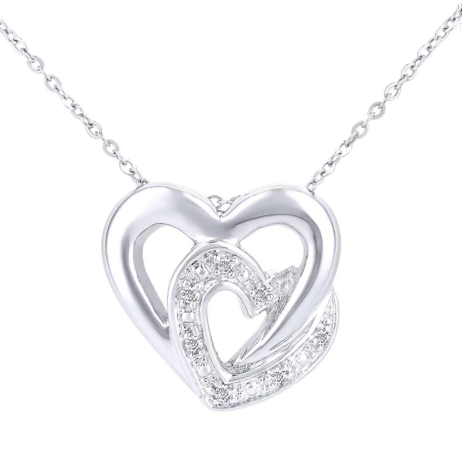 Jewelco London 9ct White Gold Round 3pts Diamond Heart Charm Necklace 18 inch 46cm