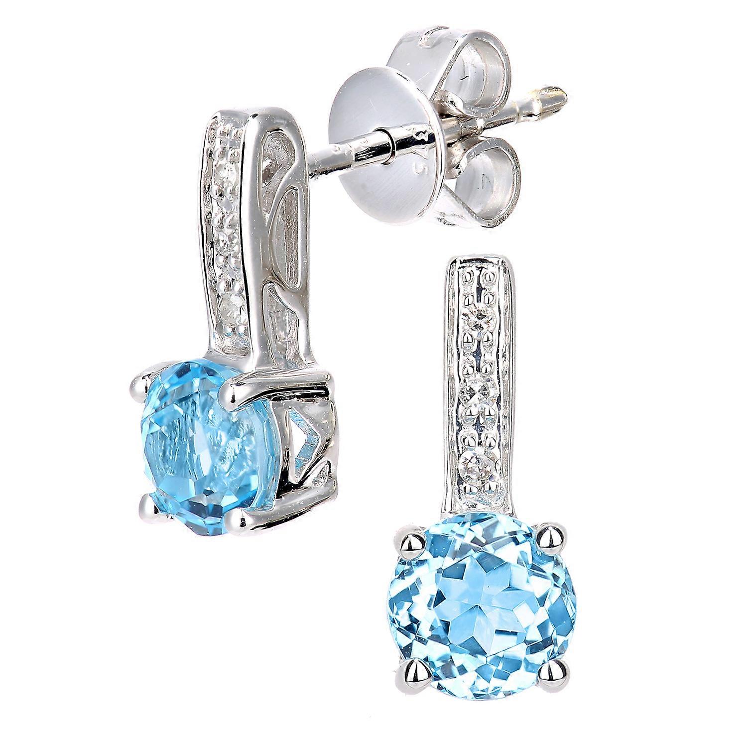 Jewelco London 9ct White Gold Round 3pts Diamond Round 1.15ct Blue Topaz Inverted Lollipop Drop Earrings