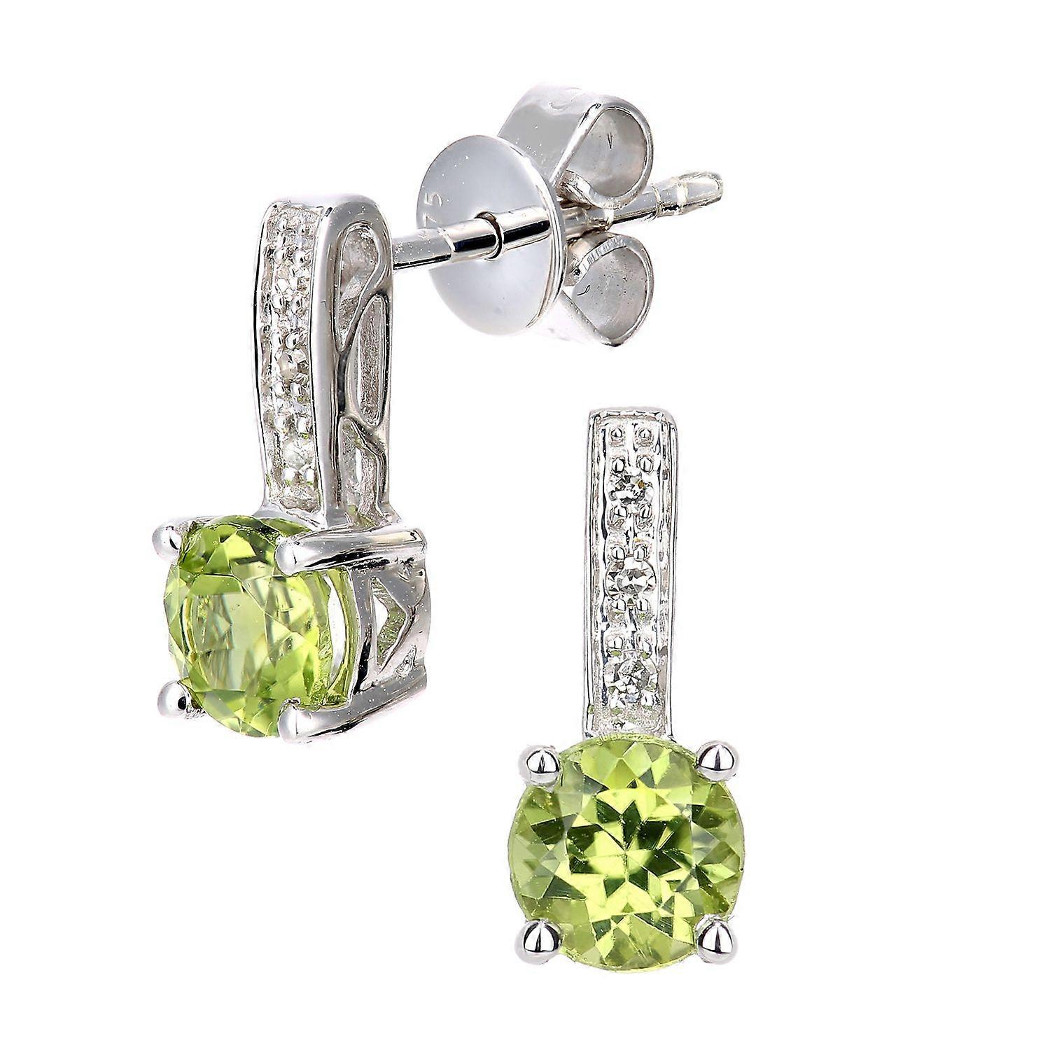 Jewelco London 9ct White Gold Round 3pts Diamond Round 1.1ct Peridot Inverted Lollipop Drop Earrings