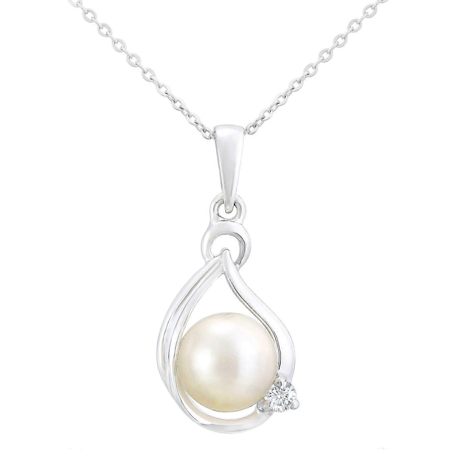 Jewelco London 9ct White Gold Round 3pts Diamond Round Pearl 6.5mm Teardrop Pendant Necklace 18 inch 46cm