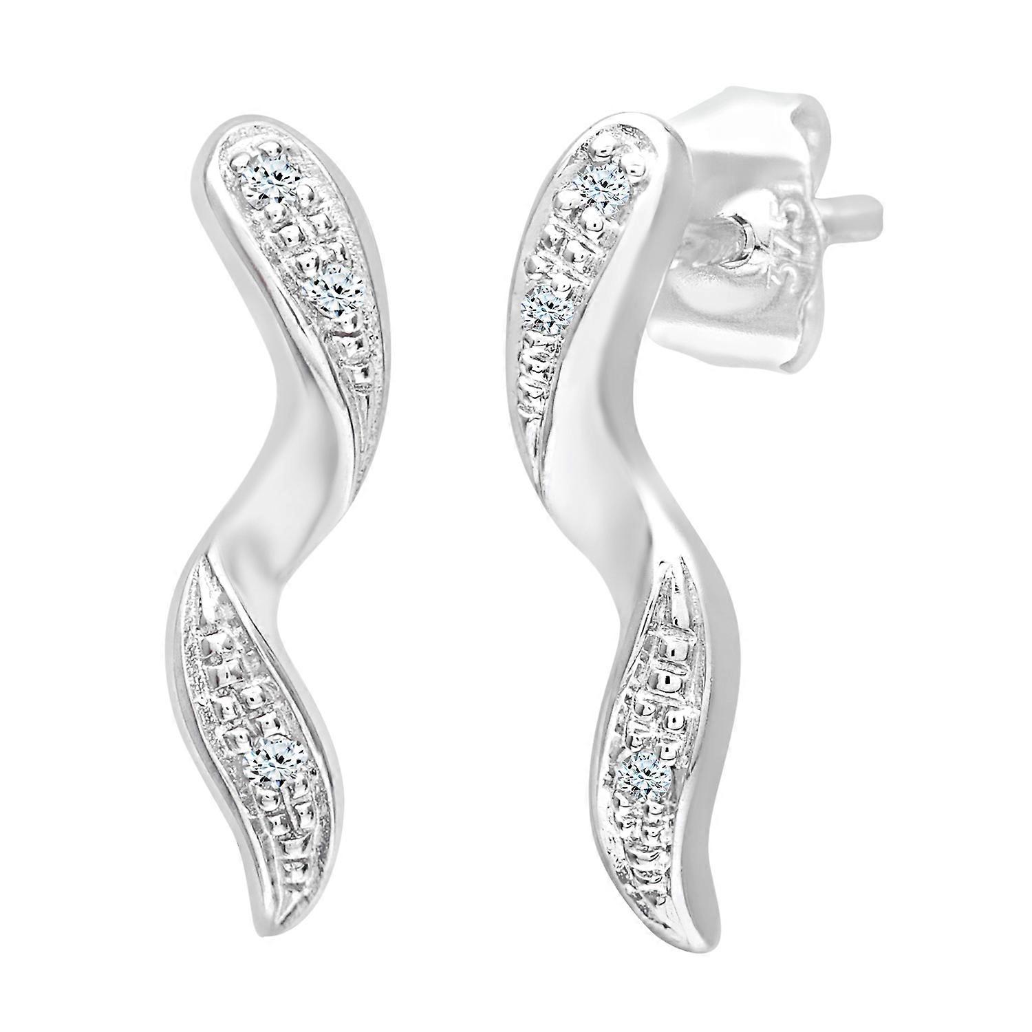 Jewelco London 9ct White Gold Round 3pts Diamond Twist Drop Earrings