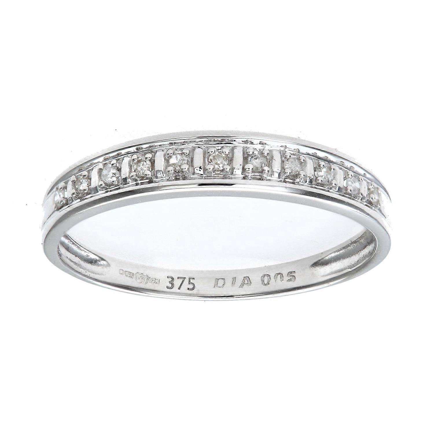 Jewelco London 9ct White Gold Round 5pts Diamond 11 Stone Column Bars Half Eternity Ring 1.5mm
