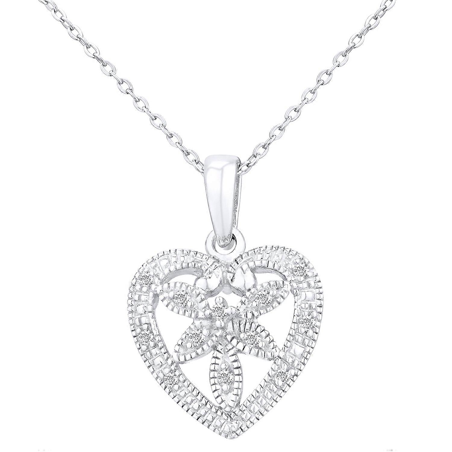 Jewelco London 9ct White Gold Round 5pts Diamond Heart Pendant Necklace 18 inch 46cm
