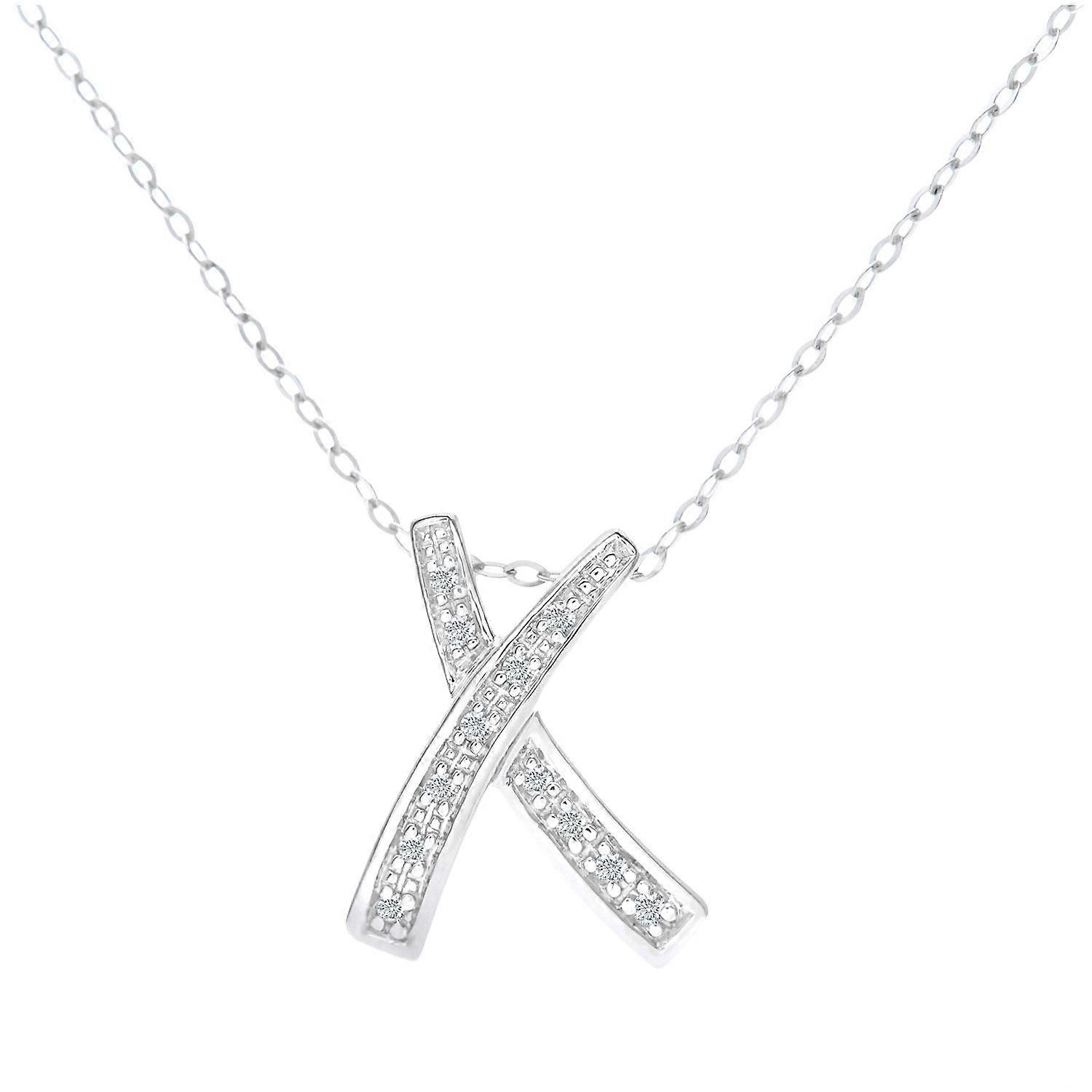 Jewelco London 9ct White Gold Round 5pts Diamond Kiss Pendant Necklace 18 inch 46cm