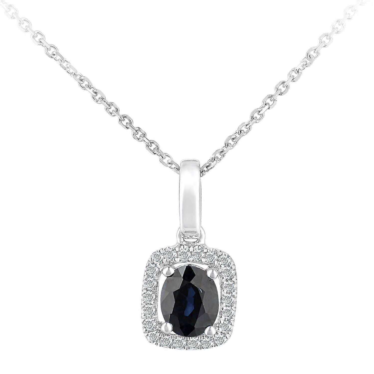 Jewelco London 9ct White Gold Round 5pts Diamond Oval 0.48ct Sapphire Cluster Pendant Necklace 16 inch 42cm