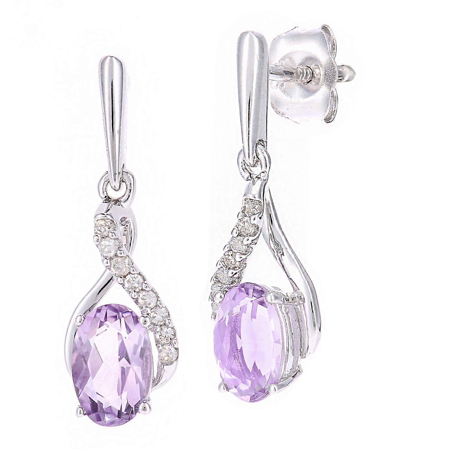 Jewelco London 9ct White Gold Round 5pts Diamond Oval 0.82ct Amethyst Kiss Crossover Drop Earrings