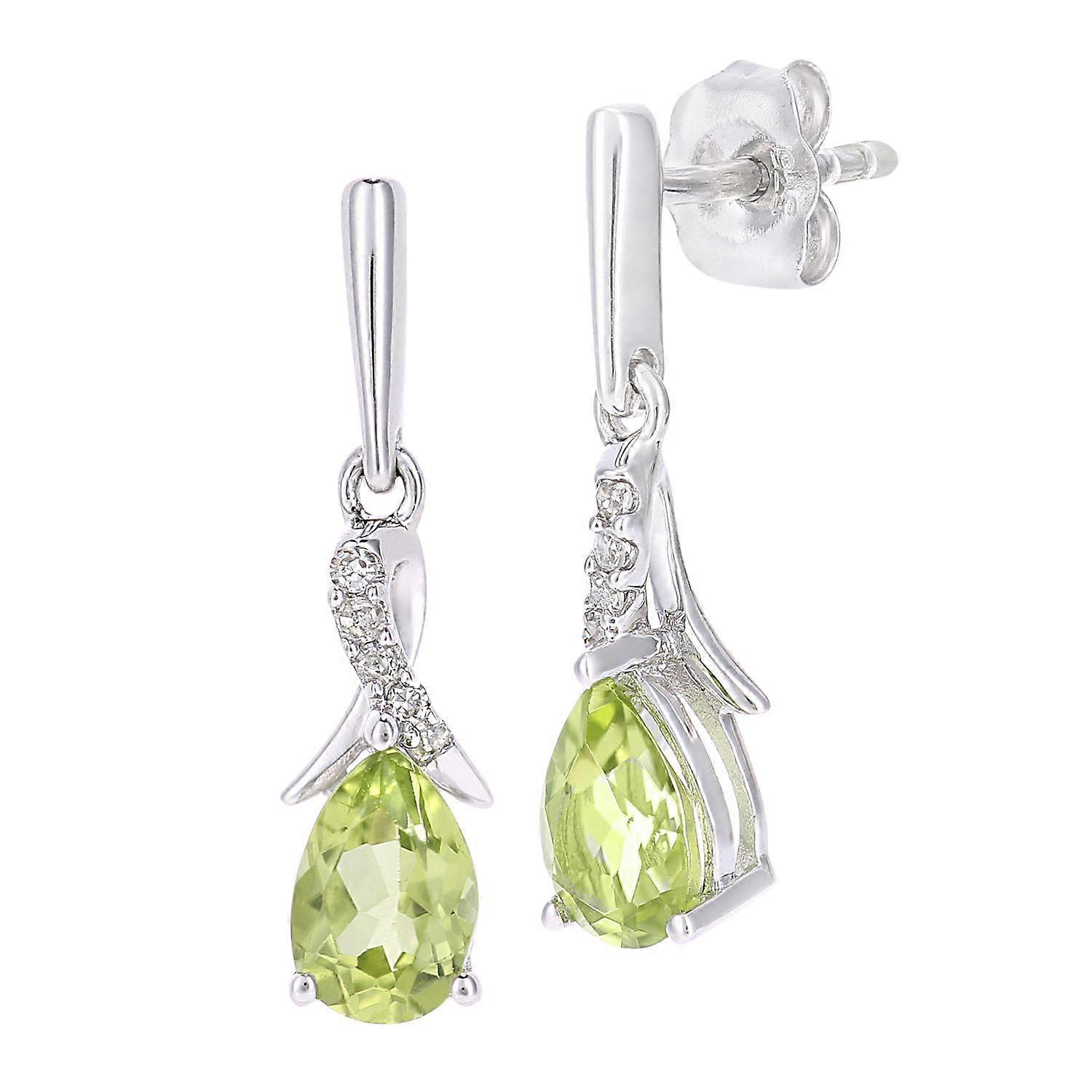 Jewelco London 9ct White Gold Round 5pts Diamond Pear 0.94ct Peridot Kiss Crossover Drop Earrings