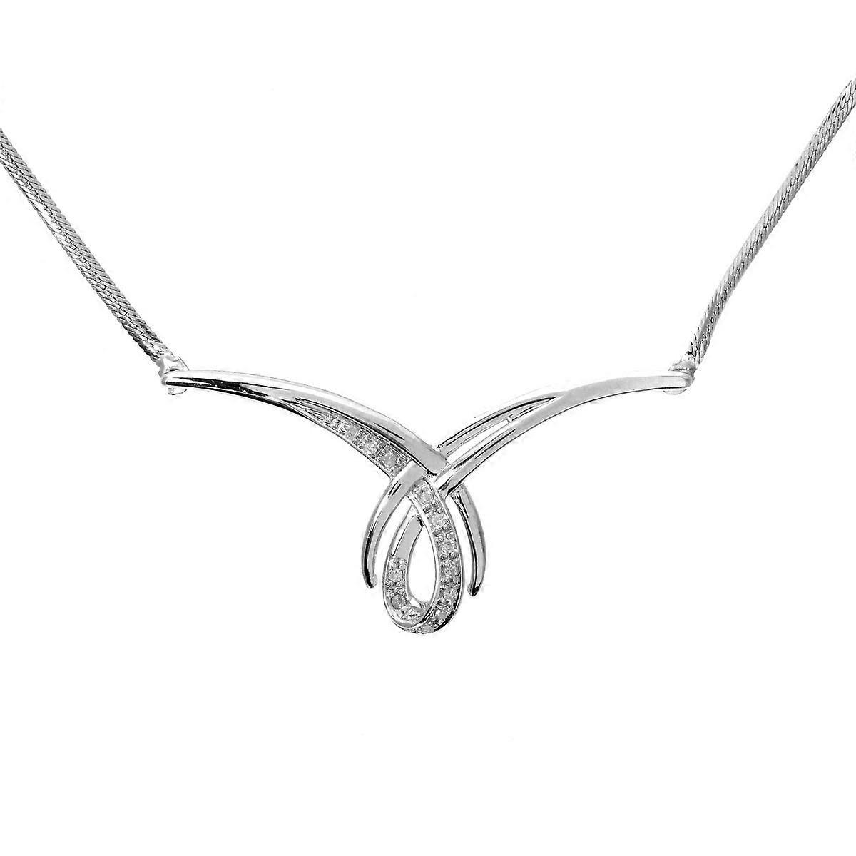 Jewelco London 9ct White Gold Round 5pts Diamond Winged Teardrop Loop Lavalier Necklace 18 inch 46cm