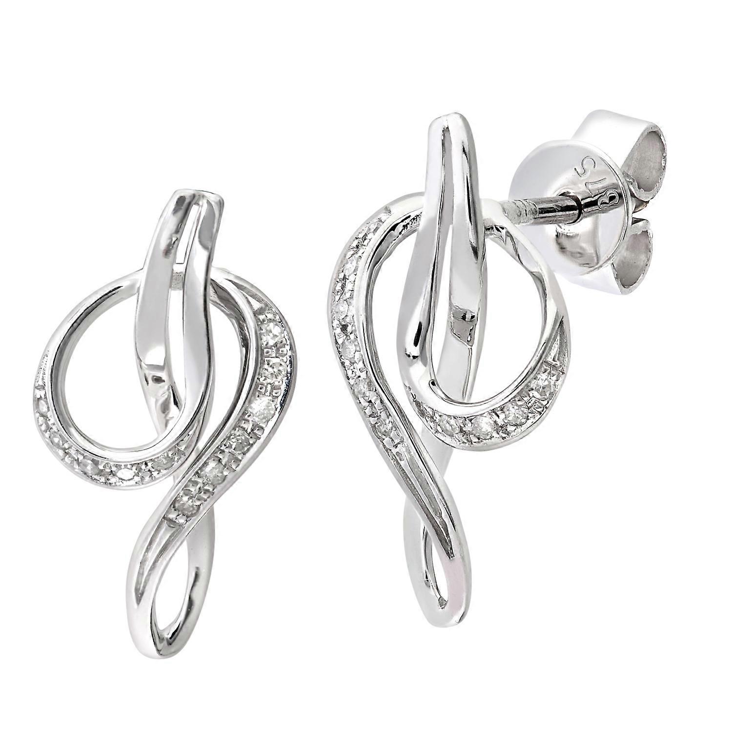 Jewelco London 9ct White Gold Round 7pts Diamond Upside Down G Treble Clef Music Note Drop Earrings