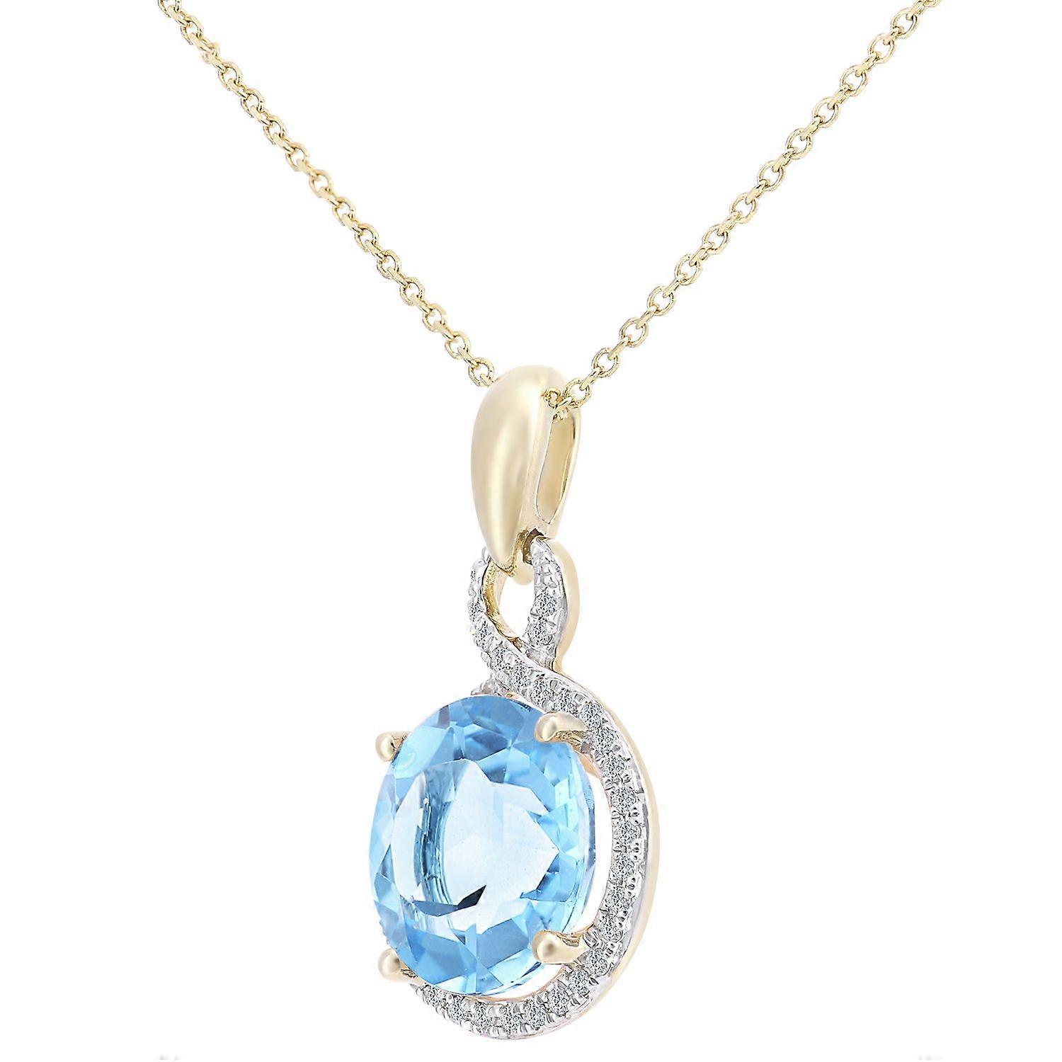 Jewelco London 9ct White Gold Round 8pts Diamond Round 5.75ct Blue Topaz Cocktail Pendant Necklace 16 inch 42cm