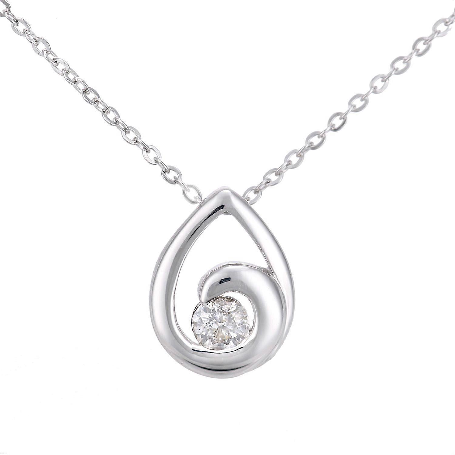 Jewelco London 9ct White Gold Round 9pts Diamond Teardrop Pendant Necklace 18 inch 46cm