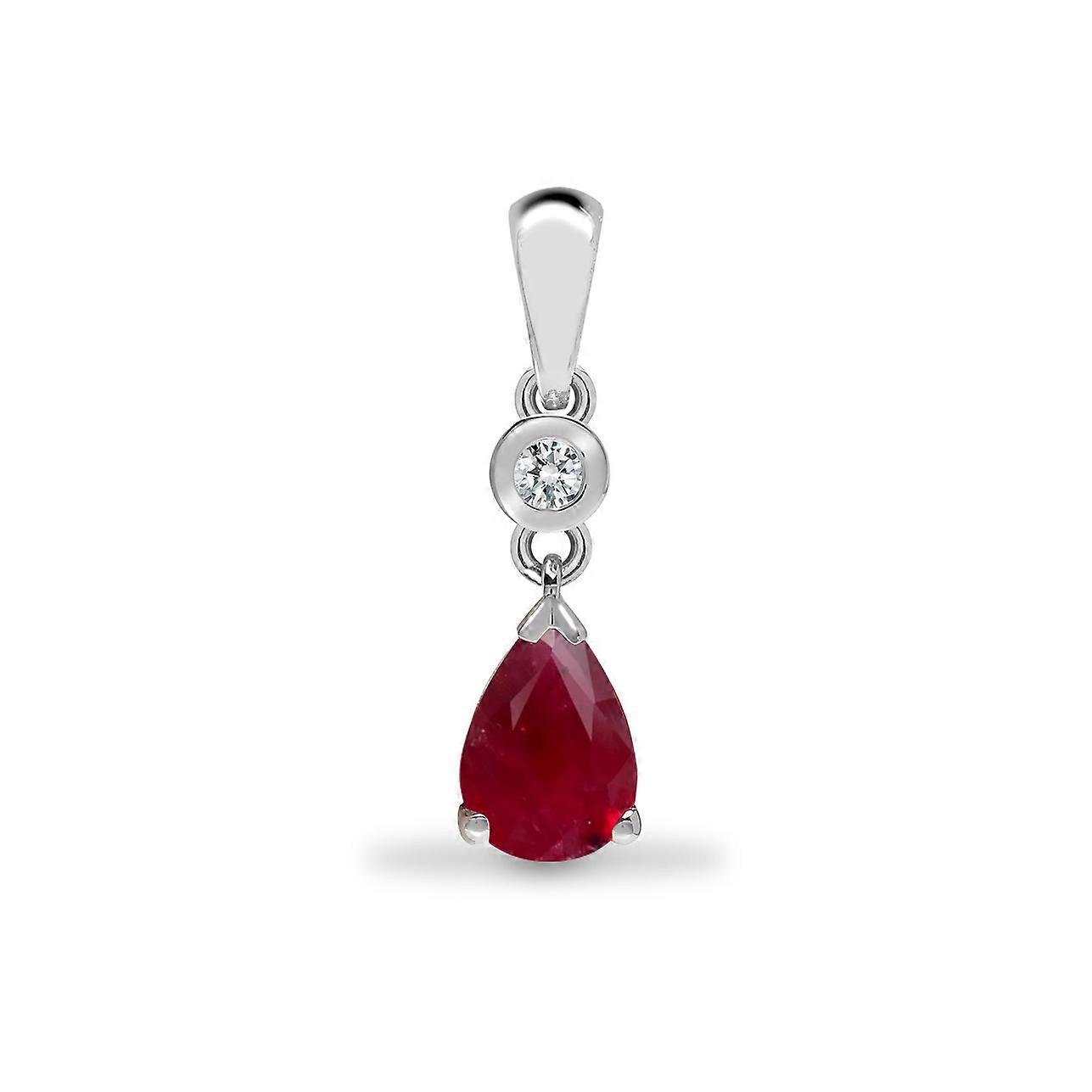 Jewelco London 9ct White Gold Rub Over Set 0.04ct Diamond and Pear Red 0.66ct Ruby Happy Tears Solitaire Drop Pendant