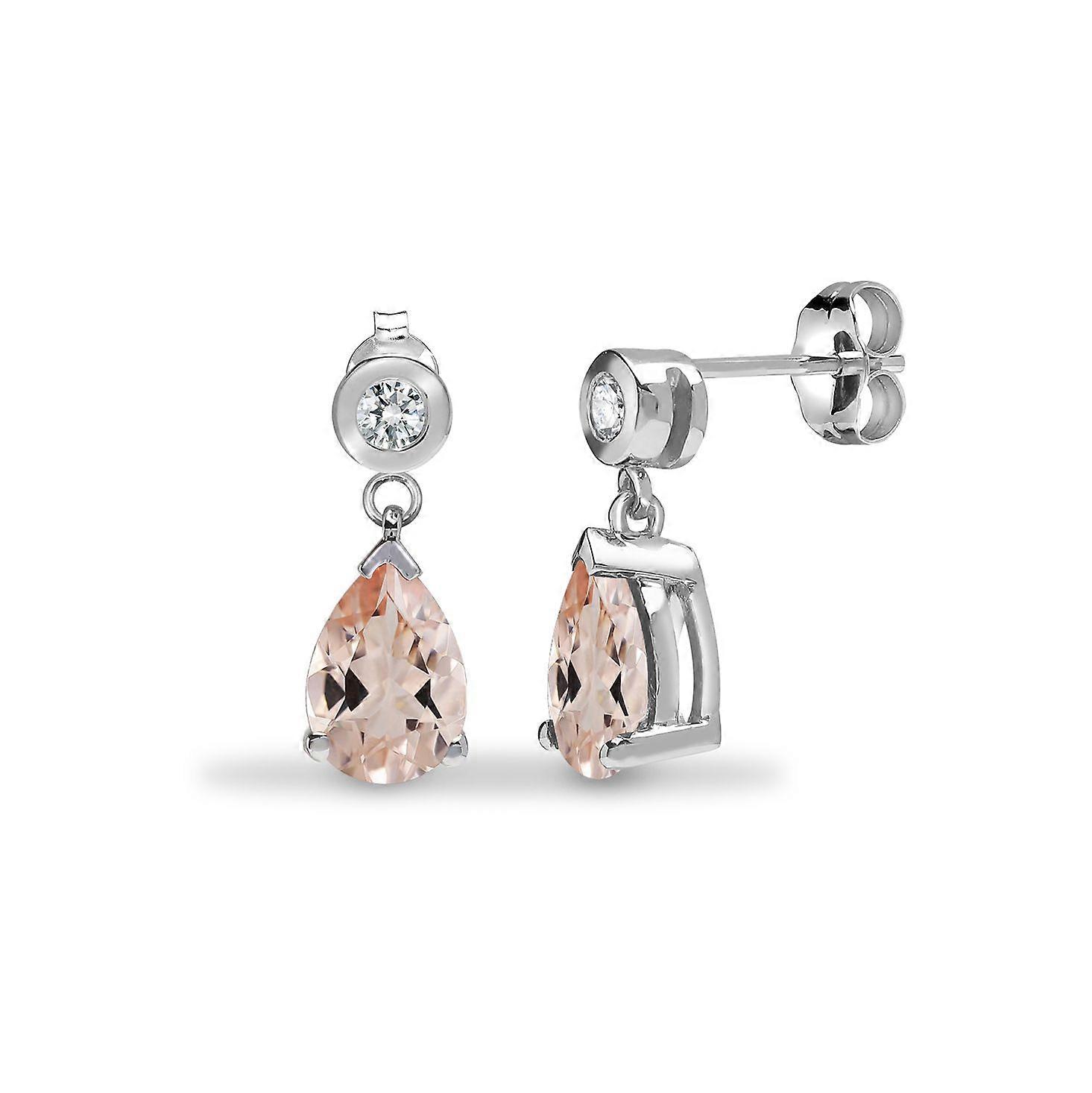 Jewelco London 9ct White Gold Rub Over Set H I1 0.08ct Diamond and Pear Peach 1.4ct Morganite Tears of Joy Drop Earrings
