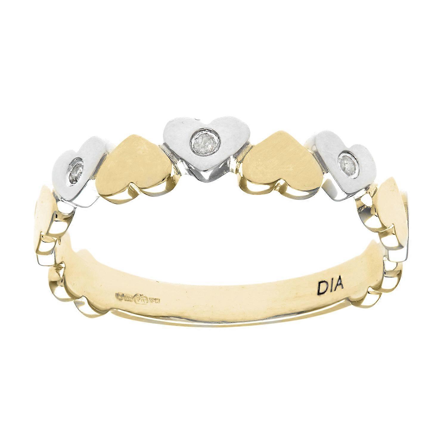Jewelco London 9ct White & Yellow Gold Round 3pts Diamond Heart Wedding Dress Ring